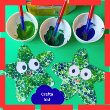 - Paint bubble wrap with blue + green