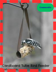 Use a plastic bottle, milk carton, or pinecone with peanut butter + birdseed.